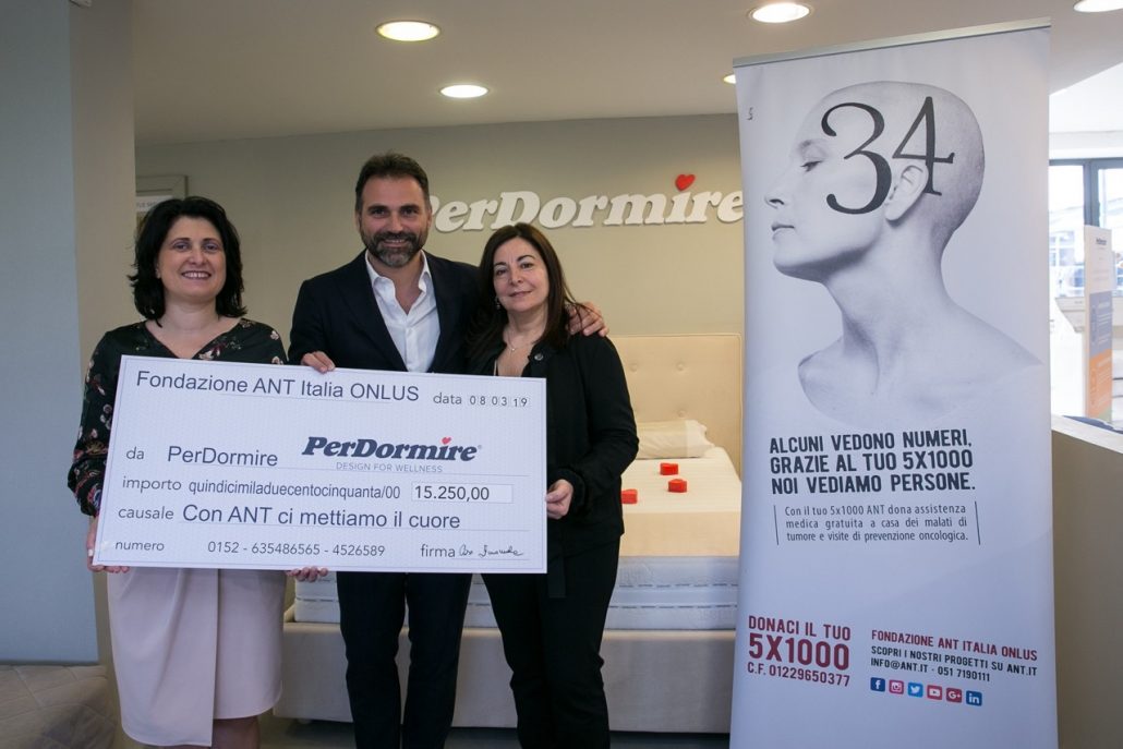 È doveroso per un’azienda che parla di benessere occuparsi in maniera fattiva del benessere di chi sta vivendo un momento tanto delicato e spesso doloroso della propria vita – commenta Paolo Luchi Direttore Commerciale e Marketing di PerDormire – Siamo felici e riteniamo sia un privilegio poter collaborare alle meritorie iniziative della Fondazione ANT.