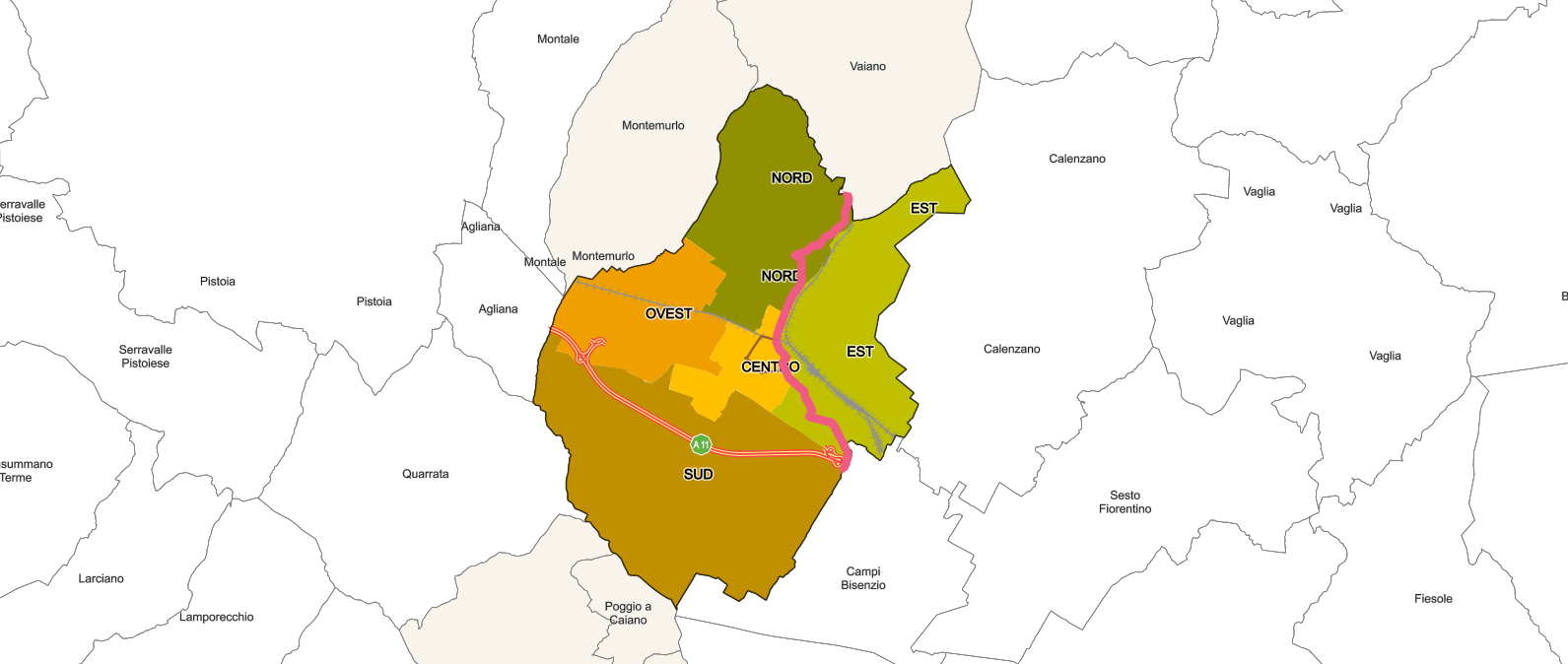 • rientra in via Francesco Ferrucci fino via dei Confini per andare a Campi Bisenzio