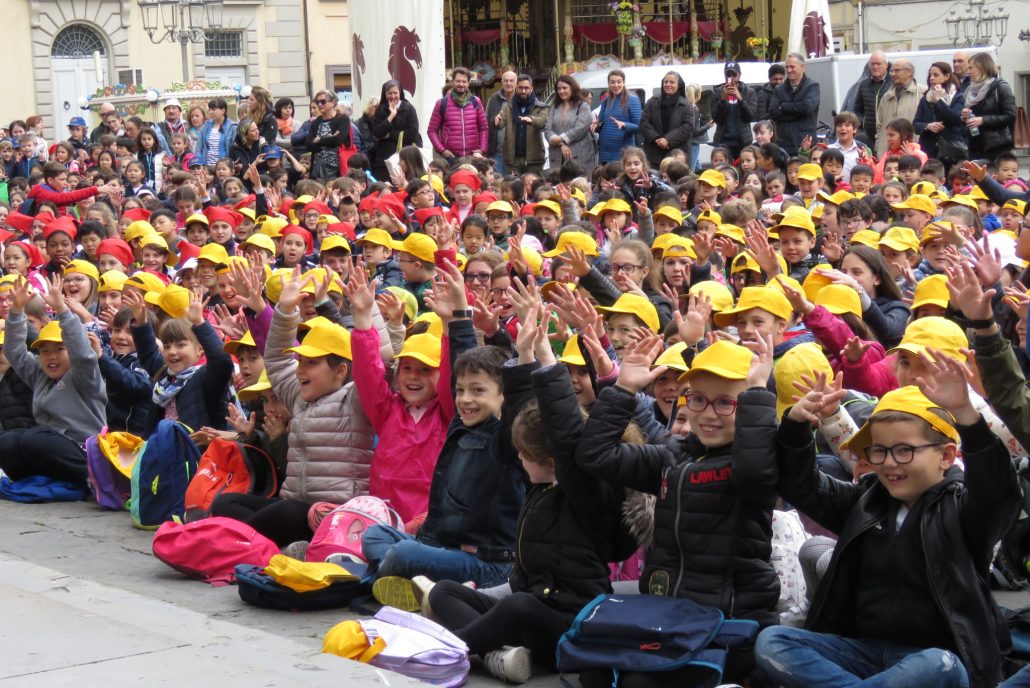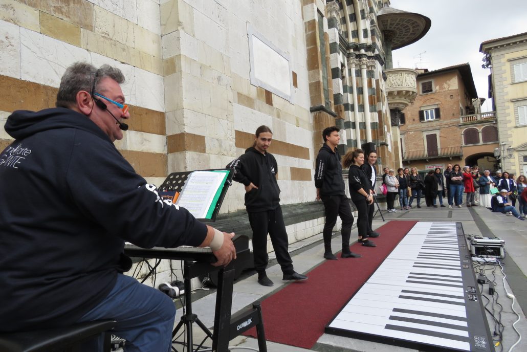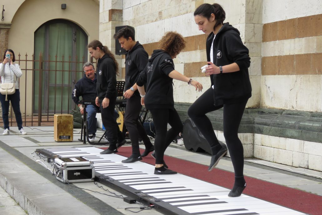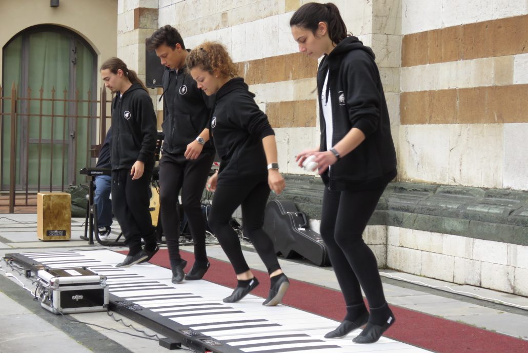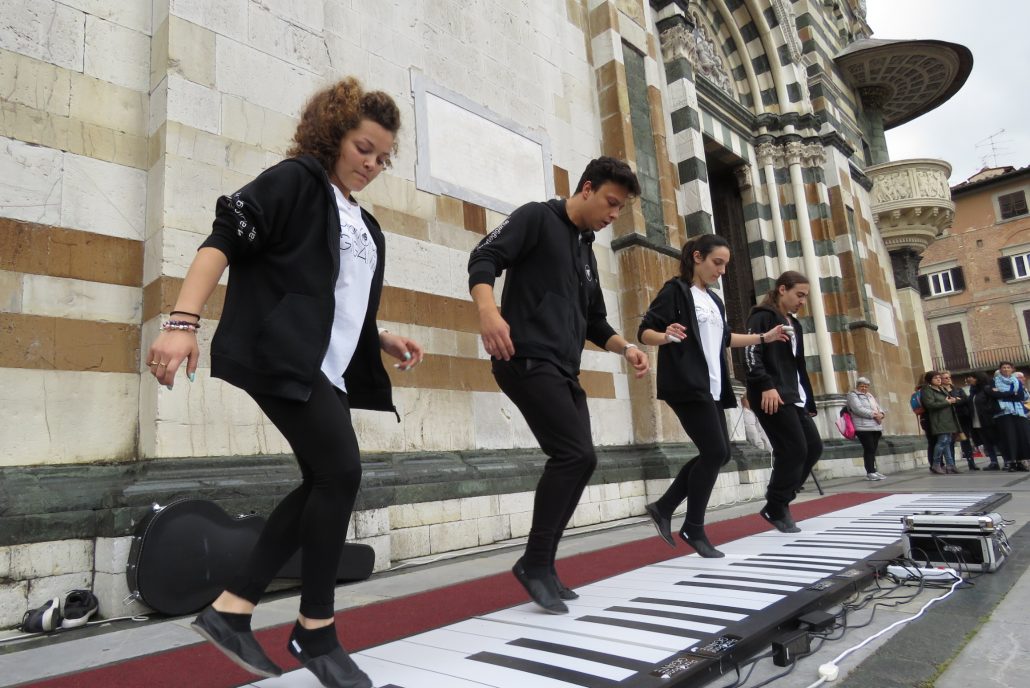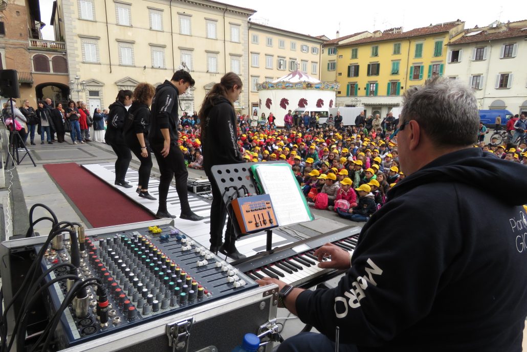 Ad aprire la mattinata è stato un momento di gioco all’aperto, in piazza Duomo. Protagonista indiscussa, la tastiera gigante “a pavimento” che ha intrattenuto i gruppi di studenti e insegnanti per uno show davvero insolito, che il pubblico aveva già potuto apprezzare in alcune trasmissioni tv nazionali. Poi la festa si è spostata in Cattedrale, dove alla presenza del vecovo Franco i bimbi hanno cantato, recitato preghiere e letto messaggi di solidarietà e pace.