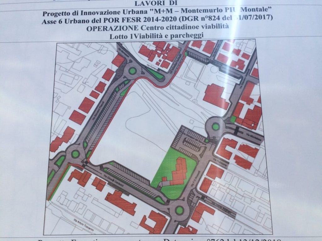 Continuano i lavori del nuovo centro cittadino di Montemurlo: questa mattina sono iniziati gli interventi sulla viabilità, che sono preliminari all’inizio del cantiere all’interno dell’ex campo sportivo, il grande giardino da 24 mila metri quadrati che dopo oltre dieci anni di chiusura sarà restituito ai montemurlesi come luogo di socialità, svago e divertimento. Il lavoro fa parte del progetto di rigenerazione urbana PIU M + M Montemurlo PIU Montale, finanziato dalla Regione Toscana attraverso i fondi europei con 4 milioni di euro. Un progetto che sta cambiando il volto del centro di Montemurlo dopo oltre un trentennio d’attesa.