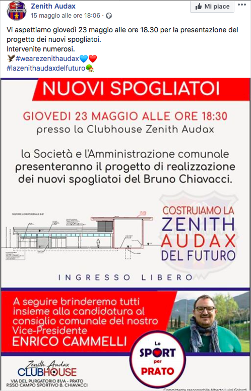“Le invasioni di campo del CGFS nel mondo dell’associazionismo, e la strumentalizzazione delle realtà sportive da parte di alcuni candidati della lista è sotto gli occhi di tutti: dall’annuncio dell’inaugurazione degli spogliatoi dell’impianto della Zenith Audax con tanto di logo della lista (nella foto sotto) alla manifestazione di basket sul playground del Serraglio (nella foto sopra), anche in questo caso con la promozione della lista. Una strumentalizzazione dello sport e dei bambini che lo praticano indecente, vergognosa e irrispettosa”, conclude Spada.