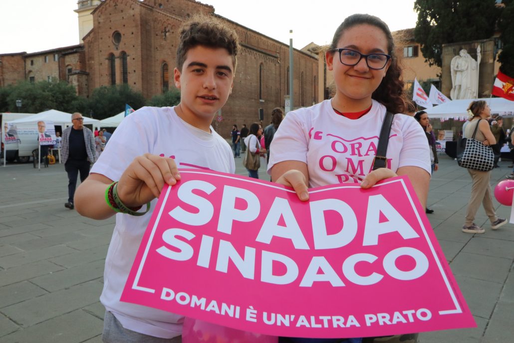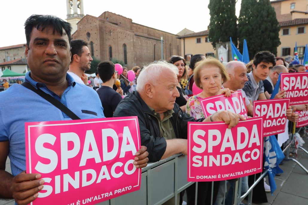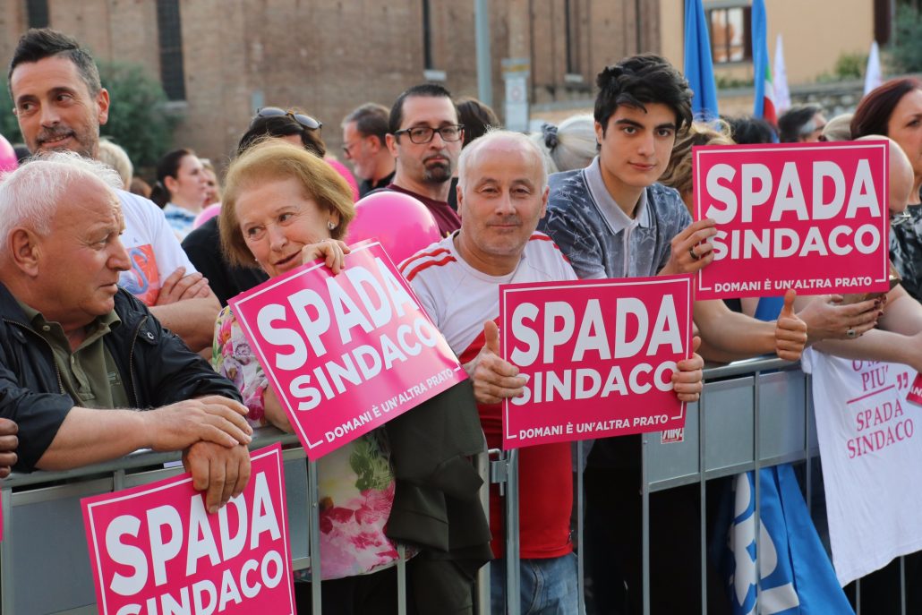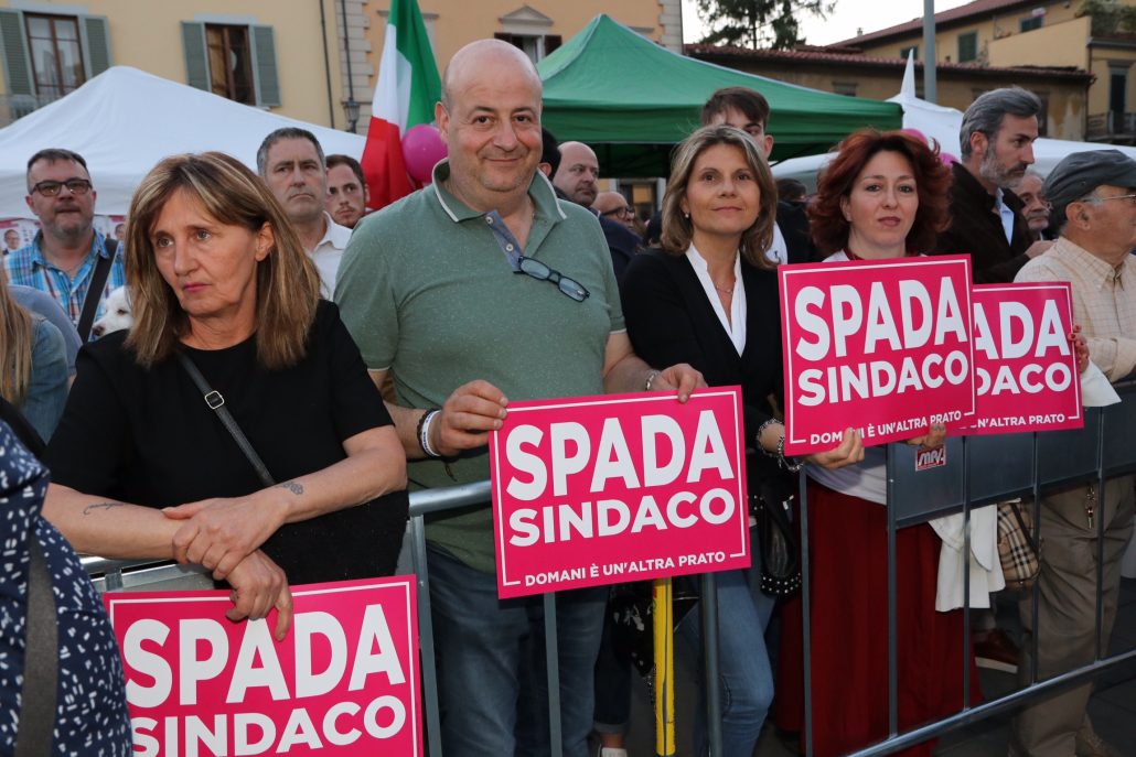 E sempre ai pratesi si rivolge Daniele Spada che promette ancora una volta di riportare il sorriso al Comune. “Non ho padroni”, afferma il candidato del centrodestra, “io ho soltanto voi”, conclude indicando la gente.