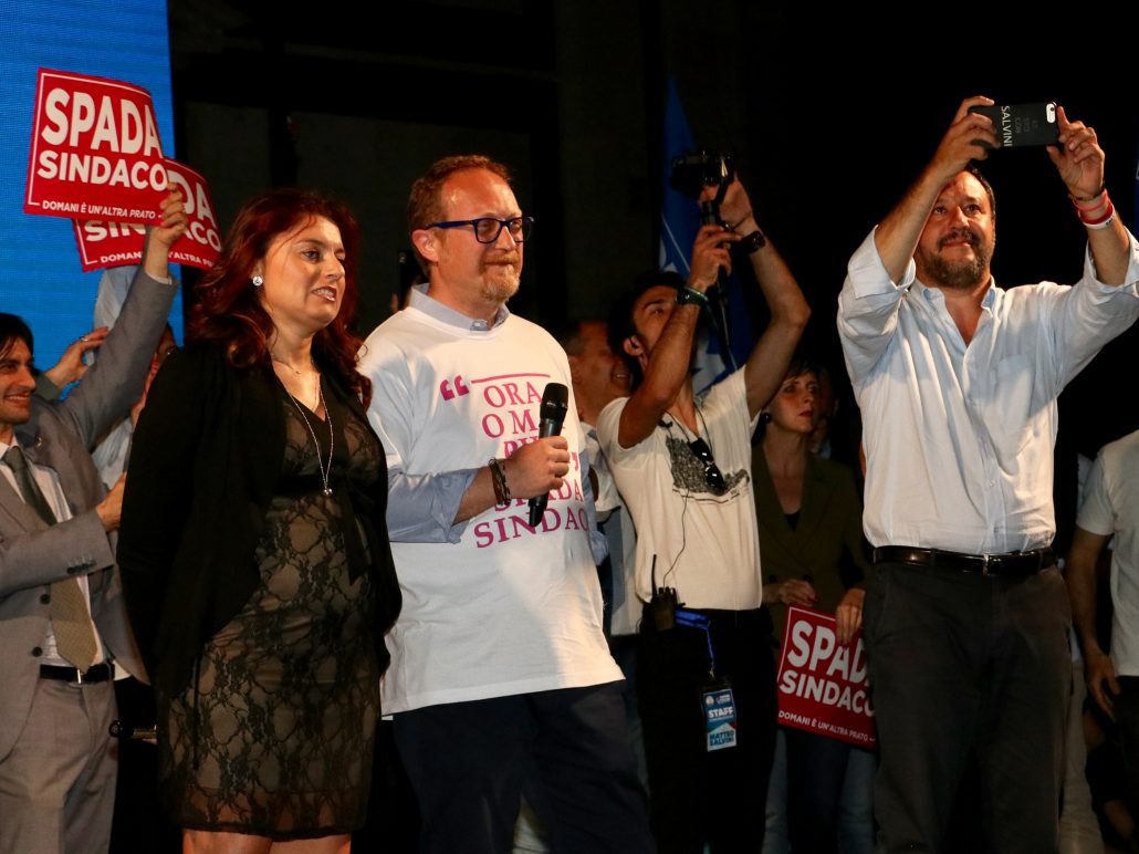 Il giorno dopo il comizio di Matteo Biffoni, in centro storico è la volta dell’avversario Daniele Spada. A tirare la volata al candidato del centrodestra è il ministro dell’Interno e leader della Lega Matteo Salvini, accolto in piazza delle Carceri da una folla di circa tremila persone, molte arrivate anche da fuori città.
