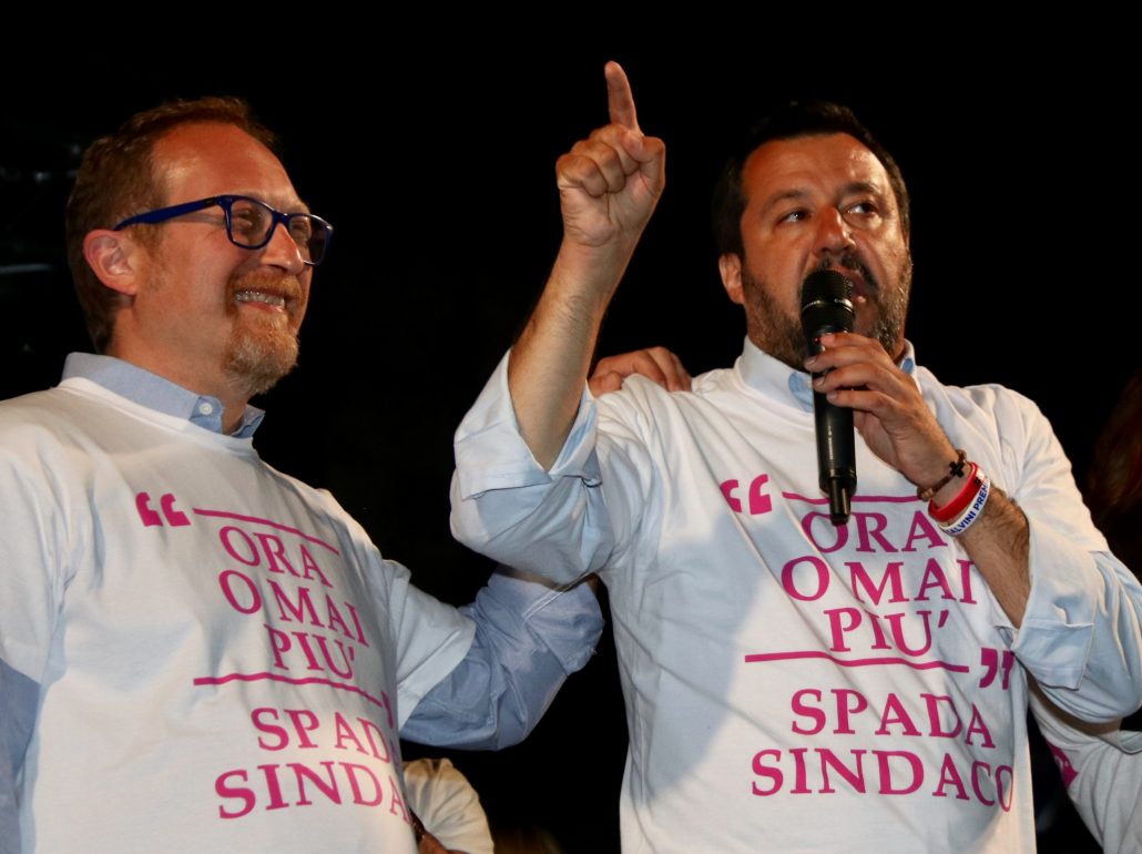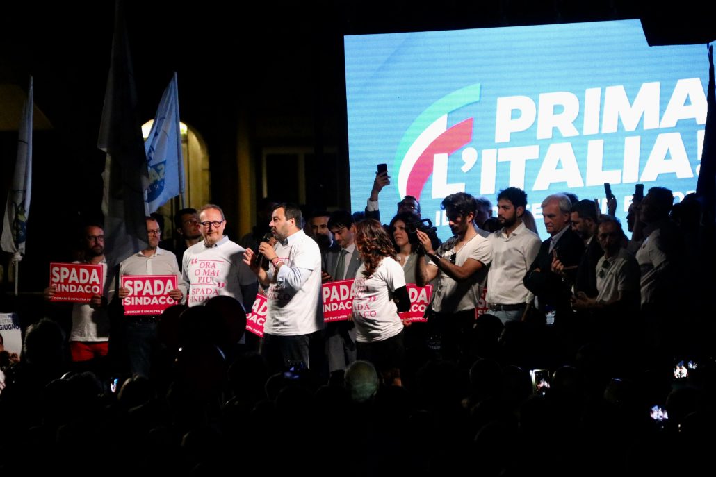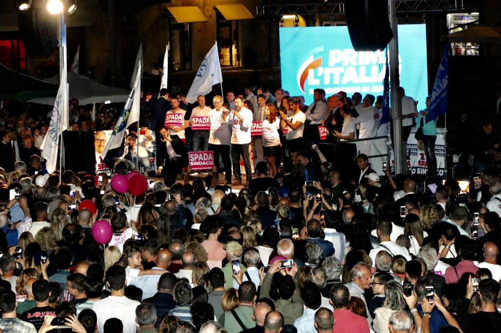 Ballottaggio, Salvini tira la volata a Daniele Spada: “Chi sta a casa è complice della sinistra”. In tremila in piazza delle Carceri a suon di manifesti e slogan FOTO