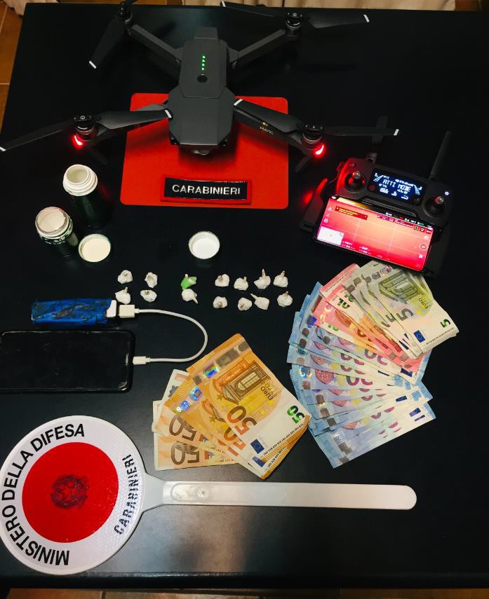 Spacciava davanti al cimitero di Paperino, ma è stato arrestato in flagranza dai carabinieri grazie anche all’utilizzo di un drone, impiegato dai militari per il controllo del territorio. È accaduto ieri sera, quando i carabinieri della stazione di Jolo hanno assistito alla cessione di una dose di cocaina fra il pusher, un cittadino marocchino di 36 anni senza fissa dimora, e un giovane pratese. I militari, che grazie all’utilizzo della tecnologia avevano notato un via vai sospetto nella zona, sono intervenuti a bloccare lo spacciatore, perquisito e trovato in possesso di altre 12 dosi di cocaina, che sono state sequestrate assieme a circa 700 euro in contanti. L’acquirente è stato segnalato alla Prefettura per i provvedimenti amministrativi del caso. L’autorità giudiziaria ha convalidato l’arresto e applicato il divieto di dimora nel comune di Prato nei confronti del giovane.