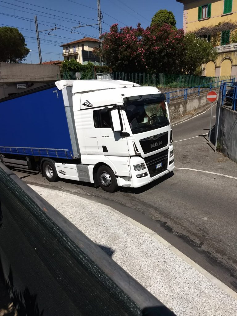 “Troppe volte infatti i tir sbagliano entrata, andandosi a perdere in via De Gasperi ed entrando quindi nel Borgo di Gonfienti, così come si dirigono erroneamente anche in via Cellerese, proseguendo per via di Sotto il Vapore. Spesso si incastrano anche nel sottopasso di via Etrusca” spiega Sapia.