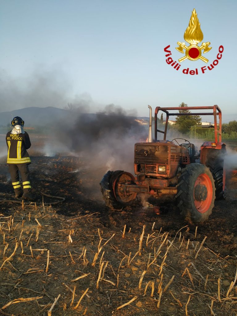 Un trattore ha preso fuoco mentre era all’opera in un terreno agricolo in via Visiana, intorno alle 20 di ieri. Immediato l’intervento dei vigili del fuoco di Prato. E’ giunta sul posto una squadra della sede centrale con due automezzi: in circa mezz’ora le fiamme sono state domate e si è riusciti ad evitare che le fiamme si propagassero alla vicina vegetazione.