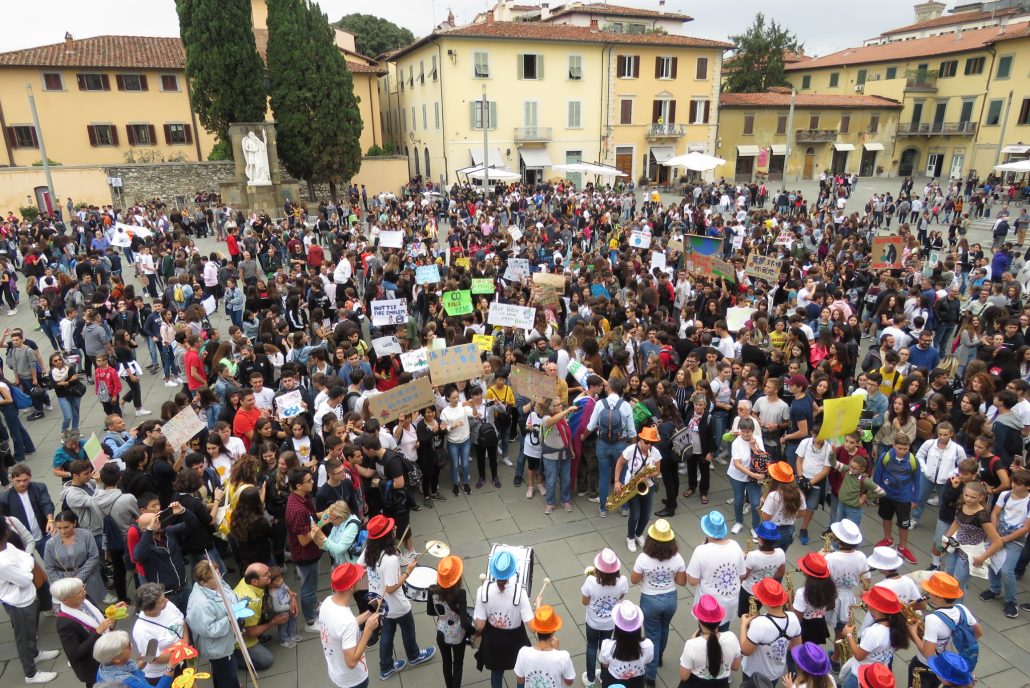 Al corteo, partito alle ore 10 da piazza Santa Maria delle Carceri, hanno preso parte anche il sindaco Matteo Biffoni, che ha rivolto un saluto ai manifestanti affacciandosi alle finestre del palazzo comunale, e il presidente della Provincia, Francesco Puggelli. Proprio la Provincia ha annunciato un bando, rivolto alle scuole superiori, per realizzare progetti “green”: 12.500 euro che serviranno a finanziare le migliori proposte avanzate dagli studenti per la diffusione delle buone pratiche ecologiste.