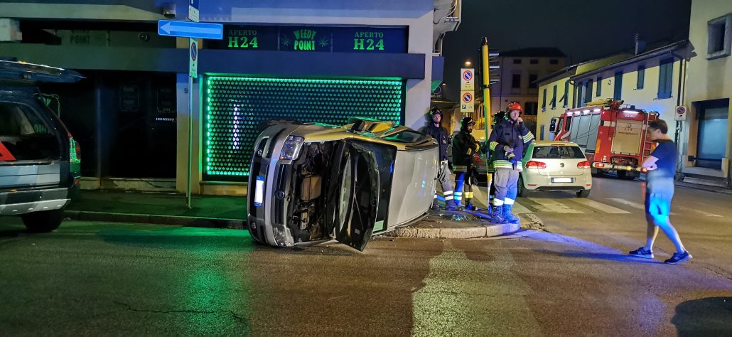 Incidente tra via Arcangeli e via Zarini: auto si ribalta e finisce sul marciapiede FOTO