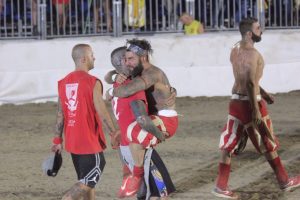 I Rossi di Santa Trinita sconfiggono in finale i Verdi di San Marco, campioni in carica, e si aggiudicano la Palla Grossa 2019. Si tratta del primo palio conquistato nella loro storia recente. Partita combattuta ed equilibrata per la prima mezz’ora di gioco con il risultato sul 4 pari. Poi Le Aquile prendono il volo segnando 5 poste di fila. Al 51′ i Verdi accorciano le distanze, ma il loro allenatore perde la testa e in campo scoppia una rissa. La partita viene interrotta e la vittoria va ai Rossi. Madrina d’eccezione della finale, disputata nell’arena di piazza del Mercato Nuovo, la campionessa olimpica e del mondo di scherma Arianna Errigo.