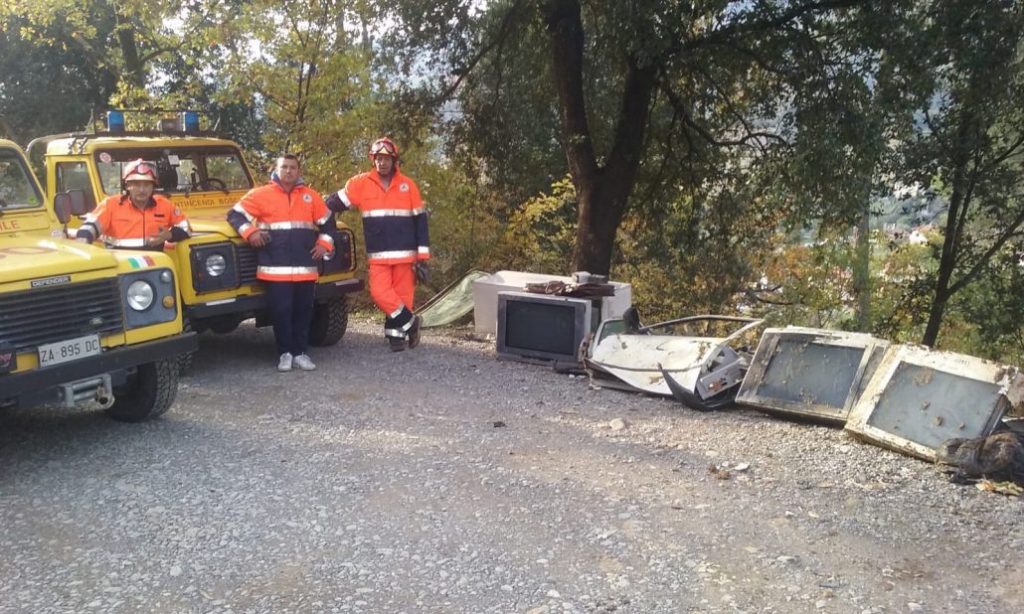 Nelle foto il recupero dei rifiuti a Javello da parte dei volontari della Vab