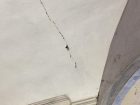 Pezzi di intonaco caduti nella navata destra della badia di Vaiano