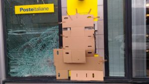 Malviventi in azione nella notte in viale Montegrappa. Ignoti hanno fatto esplodere il bancomat dell’ufficio postale, impossessandosi di tutto il denaro contenuto all’interno (il bottino è ancora da quantificare). Il colpo è avvenuto intorno alle ore 1,15. I ladri hanno utilizzato del gas per far saltare in aria il bancomat, causando un forte boato che è stato avvertito dagli abitanti della zona. Le indagini sono condotte dai Carabinieri che hanno acquisito le immagini del sistema di videosorveglianza delle Poste. L’esplosione ha causato danni anche alla vetrata dell’ufficio postale, che resterà chiuso fino a domani. Stamani sul posto è intervenuto anche il personale della scientifica per rilievi del caso.