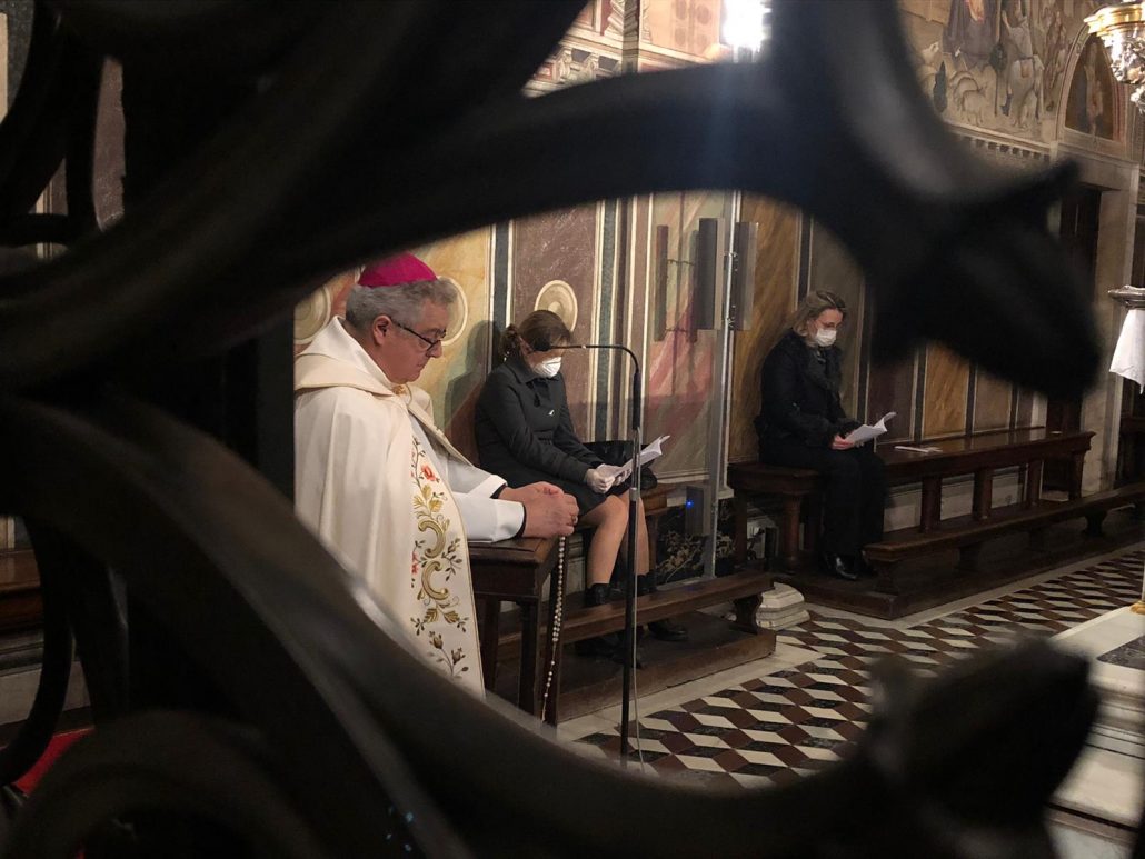 L’inizio della recita del rosario è stato salutato dai rintocchi di tutte le campane delle chiese di Prato che suoneranno a distesa.