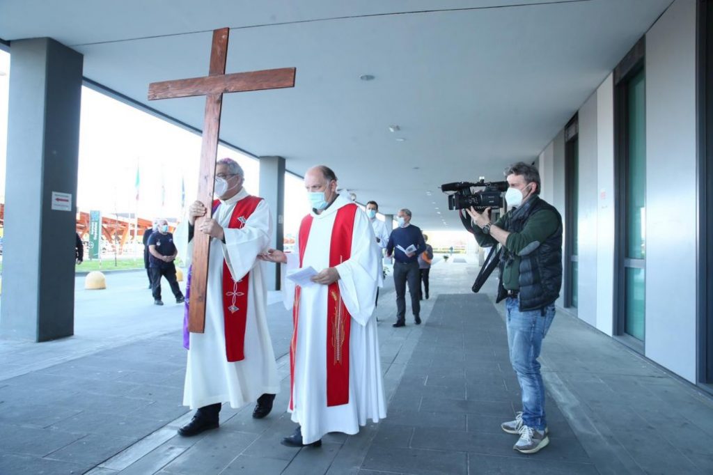 «Celebrare la sofferenza e la morte di Cristo in questo luogo, in questo tempo, in questo momento vuol dire associarla a quella degli ospedali italiani dove sono ricoverate persone che soffrono a causa di questo virus – ha detto monsignor Nerbini – ma se è vero che la croce è segno di morte è vero anche che essa preclude sempre al giorno di Pasqua, alla risurrezione, vuol dire segnare con la speranza questo momento di dolore per tante persone e le loro famiglie».
