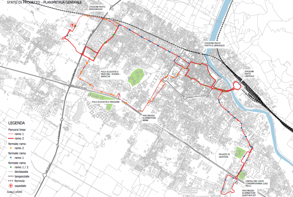 La nuova linea si svilupperà collegando con alta frequenza di corse importanti poli attrattori della nostra città partendo dalla zona est nei pressi del casello autostradale, toccando il Tribunale e, tramite Via Ferrucci, raggiungerà Piazza Stazione e quindi il centro storico. Da qui si svilupperà in due direttrici distinte verso l’ospedale Santo Stefano attraversando, da un lato, il quartiere San Paolo – ad altissima densità abitativa –  e la stazione ferroviaria di Borgonuovo, e, dall’altro, servendo il polo sanitario Giovannini, Porta al Leone e tutta l’area dell’ex ospedale Misericordia e Dolce, ora in fase di riqualificazione per la realizzazione del Parco Urbano; si dirigerà poi verso il polo scolastico di via di Reggiana e farà capolinea all’Ospedale Santo Stefano, dove i due distinti rami della nuova linea si riuniranno e da qui si dipartiranno nuovi servizi di trasporto pubblico locale per Galciana e Maliseti.