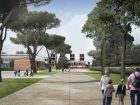 LE AREE A VERDE: Una “corona verde” circonderà le due palestre. La corona ha lo scopo di mitigare l’impatto visivo e percettivo che i due volumi di cemento hanno sull’ambiente circostante, oltre all’effetto della mitigazione climatica (soprattutto nella stagione estiva).