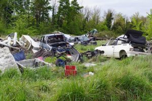 Nell’area, abbandonati a cielo aperto, sono stati rinvenuti rifiuti di vario genere, anche pericolosi, tra cui nove carcasse di autoveicoli e ciclomotori, numerosi pneumatici fuori uso, parecchi rifiuti di provenienza domestica quali materassi, divani, sedie, frigoriferi, congelatori, computer, vecchi televisori, oltre a svariati imballaggi in plastica e coperture per strutture in catrame, materiale plastico di vario genere, anche di grandi dimensioni, scarti legnosi, ben 16 cassonetti analoghi a quelli utilizzati per la raccolta dei rifiuti, accatastati e in disuso, tre bombole per gas e numerose carcasse di biciclette.
