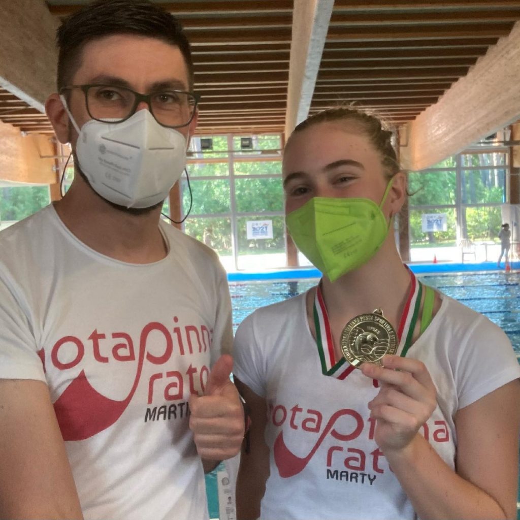 Martina Tronci si è laureata campionessa italiana agli Assoluti estivi di nuoto pinnato. Il successo è arrivato a Lignano Sabbiadoro nella specialità 400 pinne under 18. L’atleta della società Notapinna Prato si è imposta col tempo di o4′.03″,51 superando un’agguerrita concorrenza. Per Martina si è trattato di un weekend praticamente perfetto, visto che dopo l’oro nei 400 pinne under 18, si è poi ripetuta sulla distanza più breve dei 200 pinne. In questo caso ha chiuso al secondo posto, laureandosi vice-campionessa italiana col tempo di 01′.54″,77.