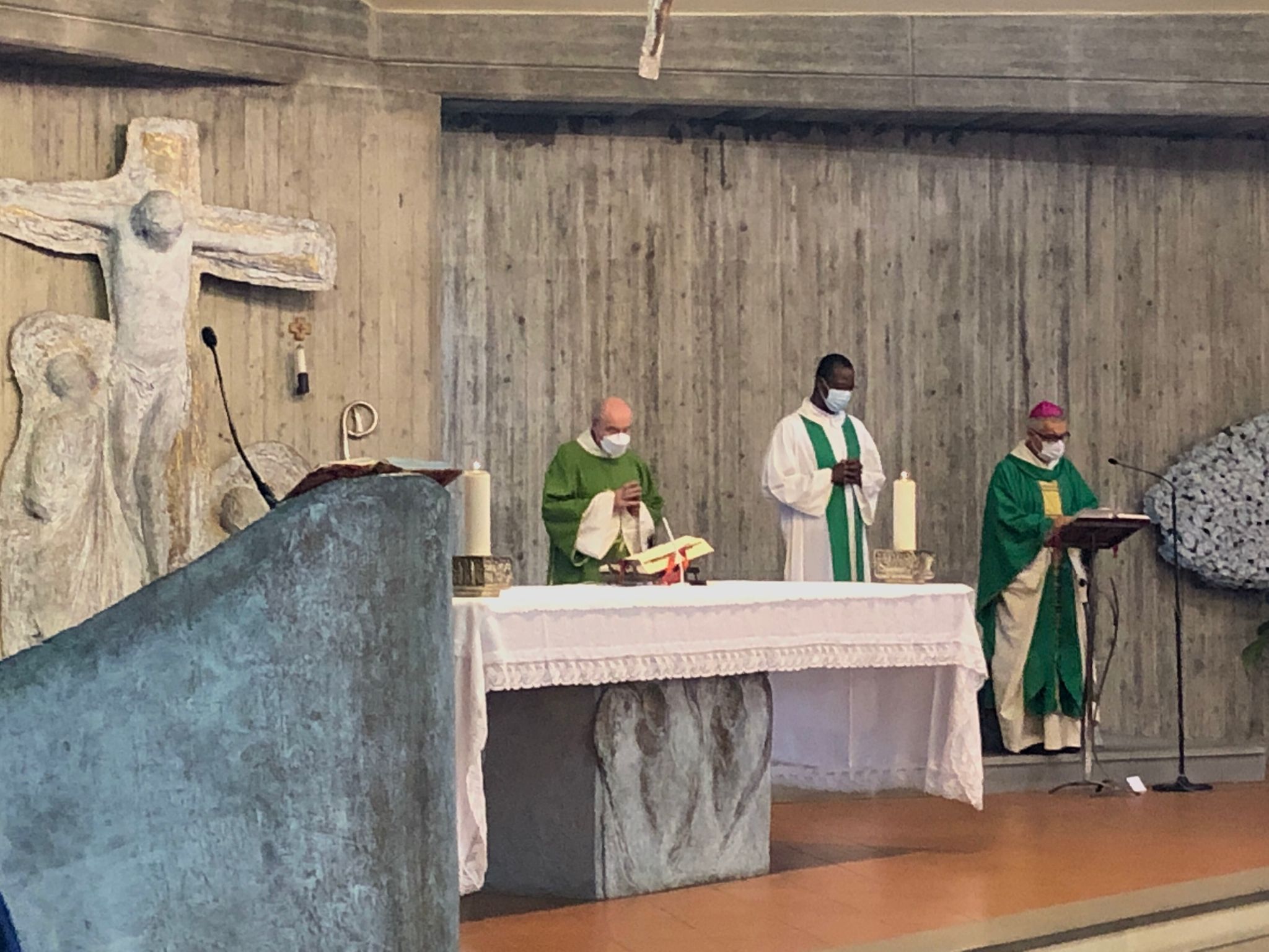 La messa è stata concelebrata da don Vincent Souly, il sacerdote incaricato dal Vescovo di prestare servizio alla Castellina in attesa della nomina di un nuovo parroco. Presente anche il diacono della Castellina Leonardo Bruni, che ha avuto il compito di portare un saluto a mons. Nerbini a nome della parrocchia: “l’accogliamo nella nostra comunità ferita e sbandata. Chiediamo consolazione nella fede per ricostruire la nostra parrocchia”.