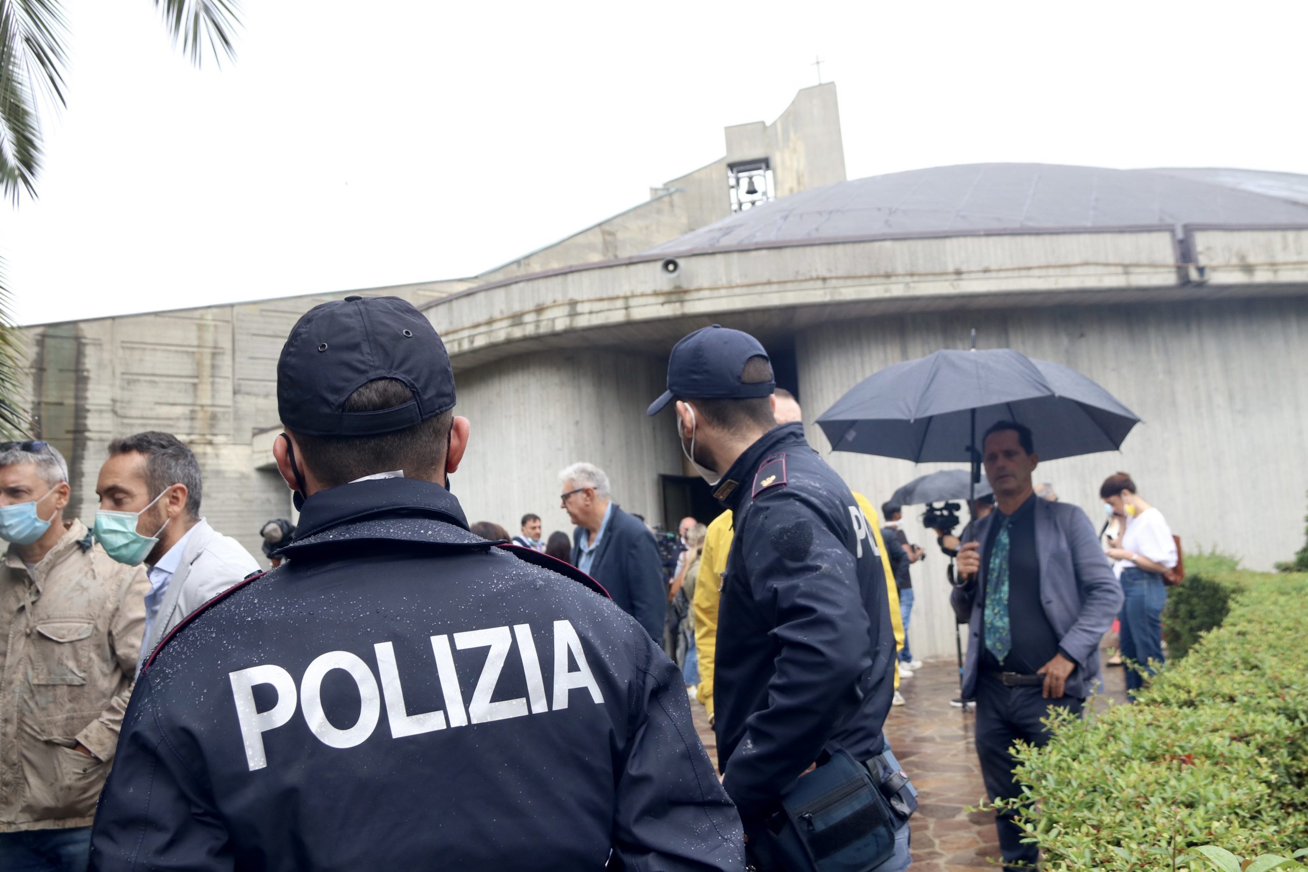 La celebrazione si è svolta in modo composto e in un grande clima di raccoglimento e di fede. La chiesa era piena e alcuni fedeli hanno dovuto partecipare alla messa sul sagrato. C’è stata anche la contestazione da parte di un uomo che ha appeso uno striscione sul muretto di una abitazione davanti alla chiesa. La polizia, presente sul posto per garantire la sicurezza e il normale svolgimento della celebrazione, lo ha rimosso. È stato l’unico momento di tensione avvenuto durante la celebrazione.