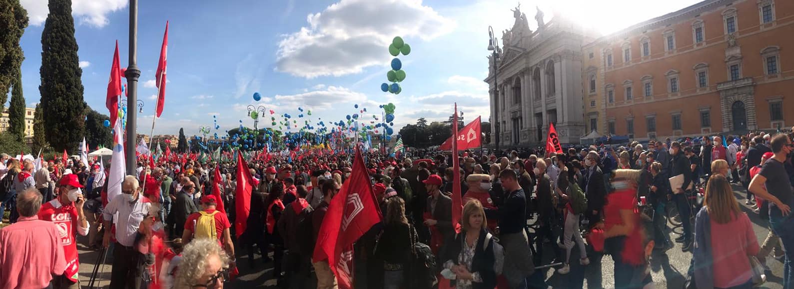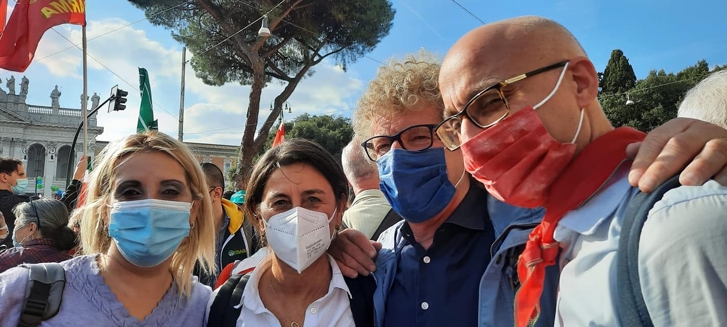 Sono stati circa 200 i manifestanti partiti da Prato per partecipare all’iniziativa “Mai più fascismi”, il sit-in nazionale dei sindacati in piazza San Giovanni a Roma, in segno di solidarietà alla Cgil, la cui sede è stata devastata una settimana fa dall’attacco squadrista di un gruppo di estrema destra, infiltratosi al corteo No-Green Pass.