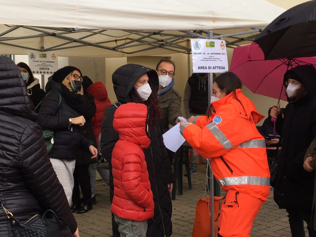 L’appello lanciato dal Comune di Vaiano è stato raccolto. Il primo giorno di screening della popolazione scolastica ha registrato – alle 18 di ieri, domenica 28 novembre, alla chiusura del punto prelievi – ben 410 tamponi rapidi eseguiti con un solo test positivo da verificare adesso con il tampone molecolare. Nonostante il freddo e la pioggia sin dalla prima mattinata di ieri, con un afflusso regolare, decine e decine di genitori hanno accompagnato i loro figli che frequentano le scuole elementari e le medie inferiori nello spazio appositamente attrezzato dalla Pubblica Assistenza per l’esecuzione del test antigenico rapido. Clima sereno nonostante la delicatezza del momento, a tutti la protezione civile comunale ha donato un set di mascherine.
