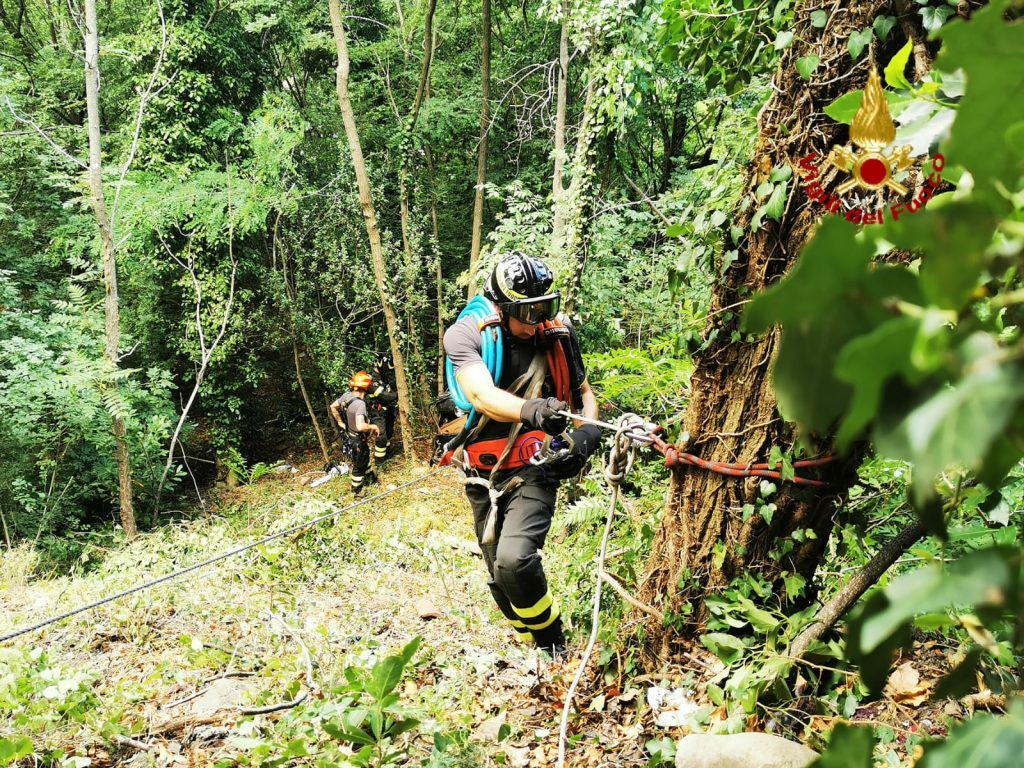 La rimozione era stata programmata dai vigili del fuoco a seguito di una richiesta pervenuta dalla Polizia Provinciale per inquinamento ambientale. La carcassa si trovava in una posizione che impediva il normale recupero da parte di un mezzo ordinario; da qui la necessità di far intervenire i vigili del fuoco, che si sono calati lungo la scarpata, hanno tagliato in più parti i resti e li hanno poi issati fino alla strada, dove sono stati presi in carico dalla Polizia Provinciale per lo smaltimento.