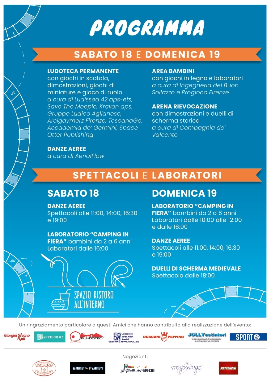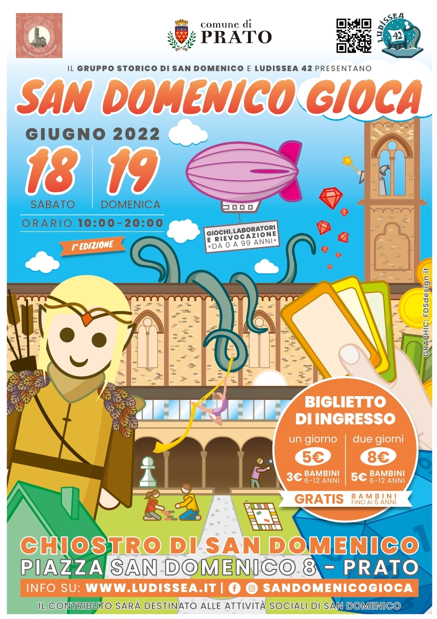 Il prossimo weekend, invece, debutta la prima edizione di «San Domenico gioca», una manifestazione con giochi, laboratori e rievocazioni per tutte le età “da 0 a 99 anni”, che si svolgerà sia nel chiostro che nella piazza di San Domenico, sabato 18 e domenica 19 giugno dalle 10 alle 20. Ideata e organizzata dal Gruppo storico di San Domenico e Ludissea 42, prevede una serie di eventi per tutti: spettacoli di danze aeree, sia sabato che domenica, alle 11, 14, 16.30 e 19; laboratori per bambini da 2 a 6 anni, sabato dalle 16 e domenica dalle 10 alle 12 e dalle 16; infine, duelli di scherma medievale domenica alle 18. Inoltre, ci saranno la ludoteca permanente, l’area bambini e uno spazio ristoro all’interno.