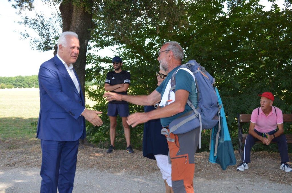 E alle Cascine di Tavola è arrivato anche il Presidente della Regione Toscana, Eugenio Giani (nella foto sotto), che si è congratulato con gli organizzatori ed ha mostrato il suo apprezzamento per questo evento, che valorizza uno dei cammini che fanno parte della rete regionale dei cammini, capace di unire al valore paesaggistico quello storico e culturale.