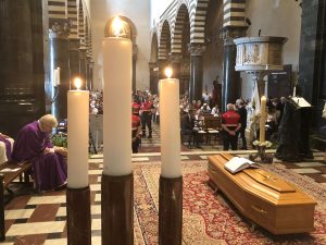 In molti, rappresentanti del clero e delle istituzioni (presenti tutti i sindaci e gli amministratori di Prato del suo episcopato) ma anche cittadini, si stanno riunendo in Cattedrale per dare l’ultimo saluto a Monsignor Gastone Simoni: navate del Duomo piene per la cerimonia funebre celebrata dal vescovo Giovanni Nerbini e che Tv Prato trasmette in diretta.