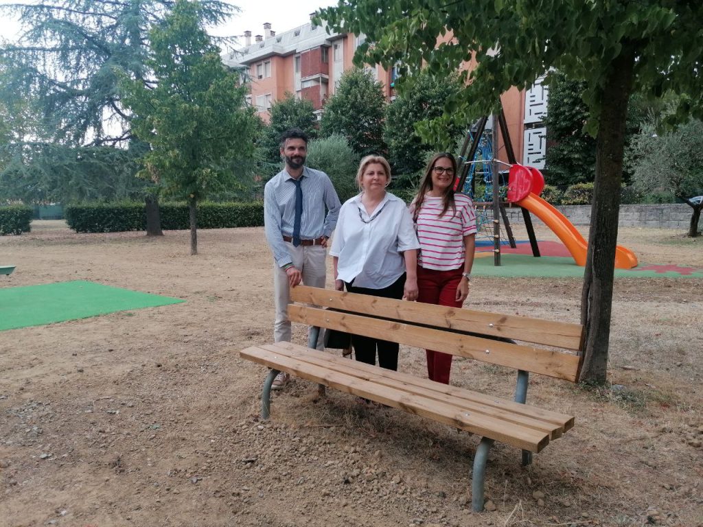 I lavori hanno interessato anche la piantumazione di nuovi alberi, in quest’area ombreggiata da aceri, pini, olivi e cedri, e la risistemazione della siepe in alcuni tratti, in modo tale da schermare l’area gioco dalla strada pubblica.