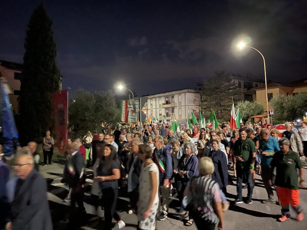 Il primo cittadino ha rimarcato la necessità di essere all’altezza del sacrificio dei partigiani e dei martiri di Figline, in uno scenario in cui “anche il pacifismo va praticato tutti i giorni”, a dispetto di un’attenzione, quella al dramma umanitario della guerra in Ucraina, che è andata diminuendo nel corso delle ultime settimane. Il sindaco Biffoni ha poi rimarcato il significato speciale del ritorno della marcia della pace, proprio in un periodo di guerra alle porte dell’Europa e nel bel mezzo della campagna elettorale.