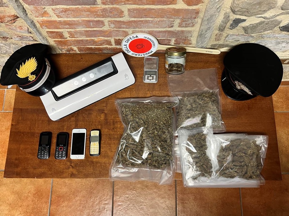 Da alcuni giorni i carabinieri lo tenevano sotto osservazione e dopo averlo notato a bordo della sua auto in un parcheggio di un supermercato nella zona di Maliseti, hanno controllato la vettura rinvenendo nella bauliera, occultati in una borsa, 3 involucri in plastica sottovuoto contenenti 280 grammi di infiorescenze di marijuana pronti per essere ceduti. La successiva perquisizione domiciliare ha consentito di rinvenire e sequestrare un altro mezzo chilo di marijuana, oltre all’occorrente per la pesatura e confezionamento delle dosi.