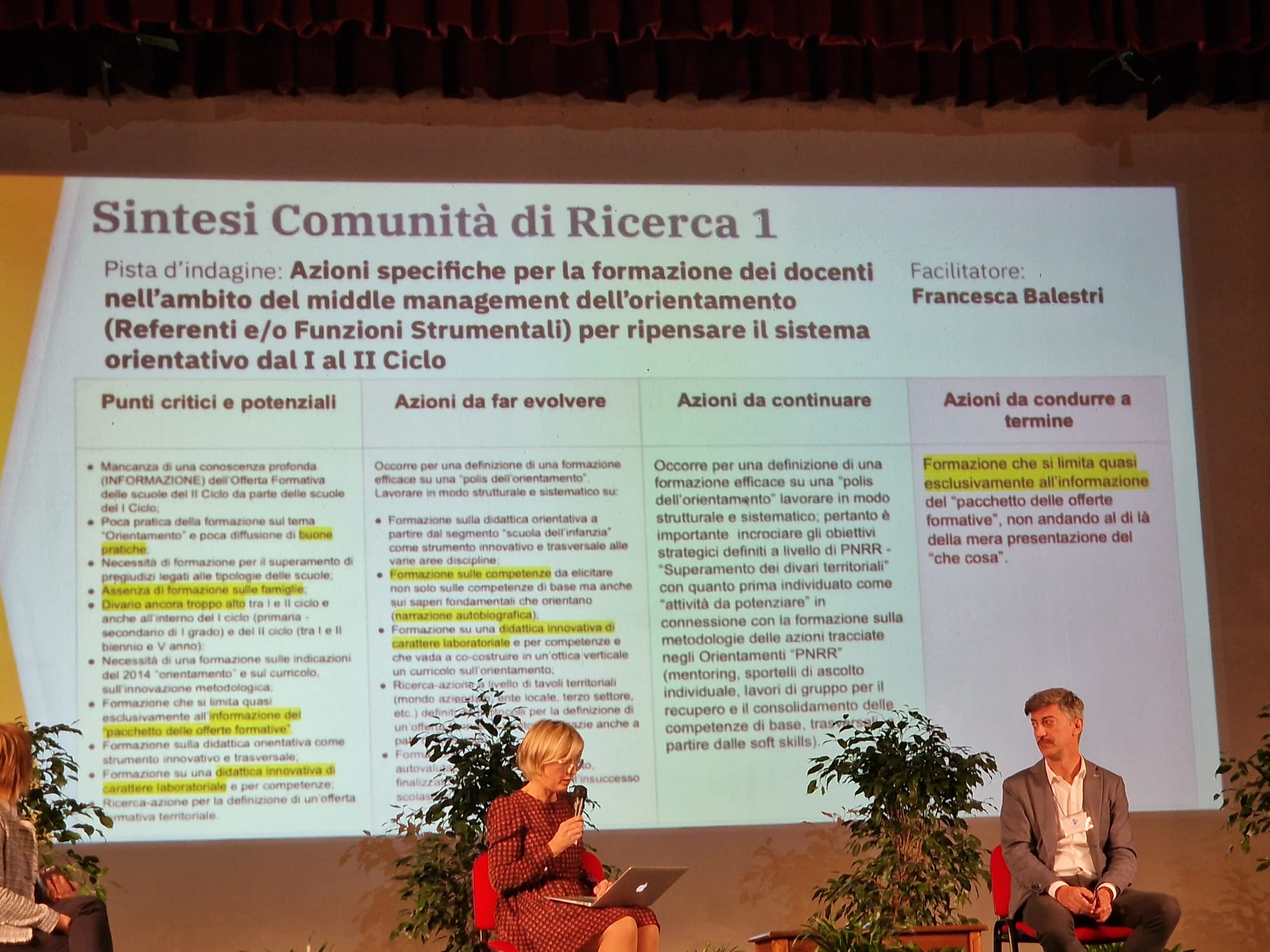 Il convegno ha avuto luogo principalmente al teatro dei Quattro mori, per poi spostarsi in alcuni Istituti scolastici per i lavori di gruppo dove i partecipanti si sono confrontati su alcune tra le tematiche più sentite dalla comunità educante a come il contrasto alla dispersione scolastica, il miglioramento dell’offerta formativa, la qualità del servizio 0-6, il potenziamento delle competenze di base, l’inclusione e lo sviluppo delle pari opportunità, la didattica digitale, l’orientamento in verticale, gli ambienti di apprendimento, l’istruzione tecnica professionale e la formazione con la scuola di alta formazione continua.