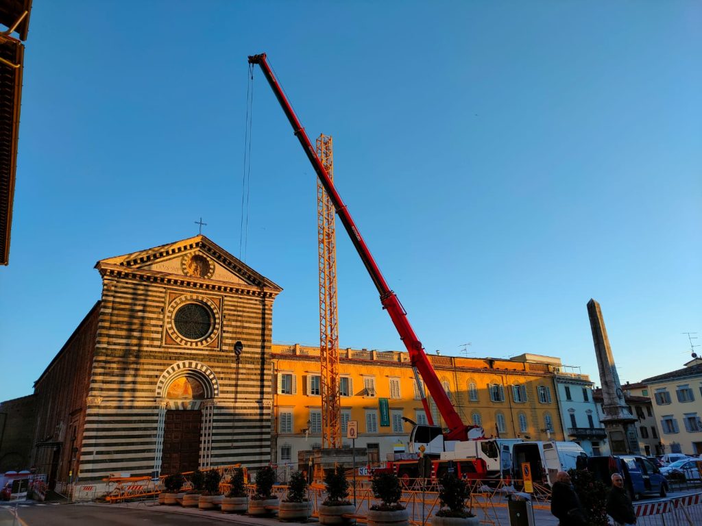 La gru, il cui montaggio terminerà domani, giovedì 24 novembre, sarà sistemata accanto al sagrato. Anche questi lavori, come quelli svolti in precedenza, non prevedono la chiusura della chiesa, che resta aperta al culto e alla presenza dei fedeli.