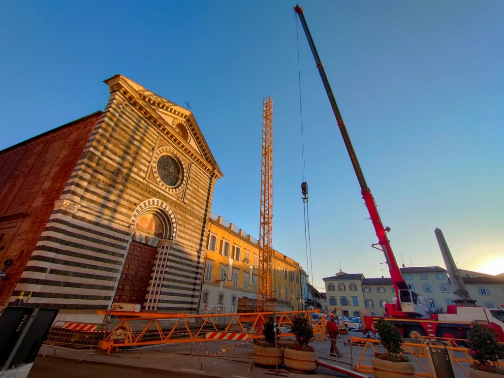 In piazza San Francesco montata una gru di 35 metri per il restauro del tetto della chiesa