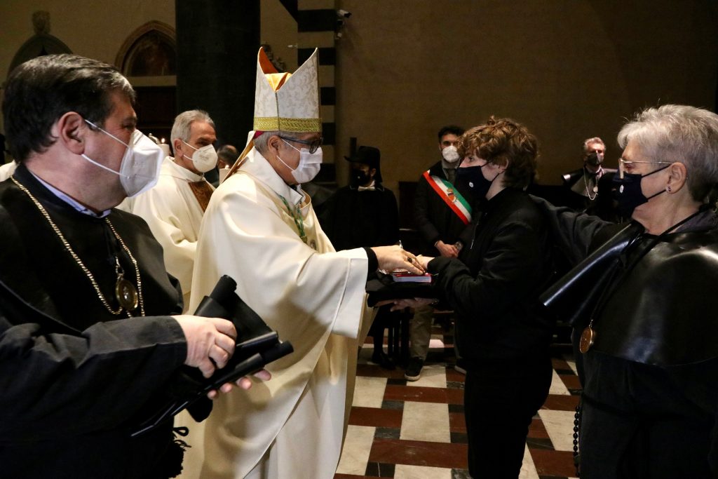 All’interno della celebrazione ci sarà la tradizionale consegna della veste a venti nuovi ingressi. Accompagnati da un padrino o una madrina, i vestendi riceveranno dal proposto Gianluca Mannelli e da don Calamai il cordiglio, la cintura con la corona del rosario, e il «sarrocchino», la mantella di pelle nera da porre sopra la veste e il Vangelo, con l’invito a «perseverare nel servizio al prossimo».