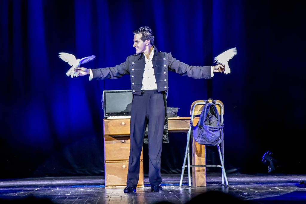 L’Illusionista propone la grande magia rivisitata da un giovane artista, ex corridore di go kart che, all’indomani di un incidente e invogliato dal fratello maggiore, si avvicina al mondo magico scoprendo un universo artistico impensato. Luca Bono ha trent’anni ma da quanto ne aveva 17 – a quell’età si è diplomato campione italiano di magia per laurearsi successivamente a Parigi con il Mandrake d’Or riconosciuto come l’Oscar della magia – gira i teatri d’Italia, Canada, Francia, Belgio e Svizzera mettendo in piedi uno spettacolo che porta la firma di Arturo Brachetti che di Luca è stato il maestro. Galeotto fu Harry Potter nell’incontro fra i due: Luca aveva 14 anni quando mosse i primi passi nel mondo dello spettacolo avvicinandosi al circolo magico di Torino. Brachetti era alla ricerca per il suo spettacolo di un ragazzo che, vestito da Harry Potter, facesse volare una scopa. Da lì la collaborazione tra i due non si è mai fermata, come in questo ultimo spettacolo teatrale che promette di lasciare a bocca aperta il pubblico di ogni età. Grazie a filmati e proiezioni su grandi schermi anche il pubblico seduto più lontano potrà rendersi conto che davvero “non c’è trucco e non c’è inganno” e che il close up e la prestidigitazione sono tecniche di pura maestria senza celare trucchi. All’apertura del sipario sarà subito un’esplosione di arti magiche accanto a una grande dimostrazione di talento dell’artista, in un caleidoscopio di sorprendenti effetti conditi con lo stile personale ed accattivante proprio di Luca Bono. In scena anche Sabrina Iannece, artista ed assistente che da diversi anni lavora al fianco di Luca Bono e che in questo spettacolo è co-protagonista.