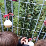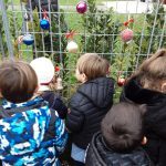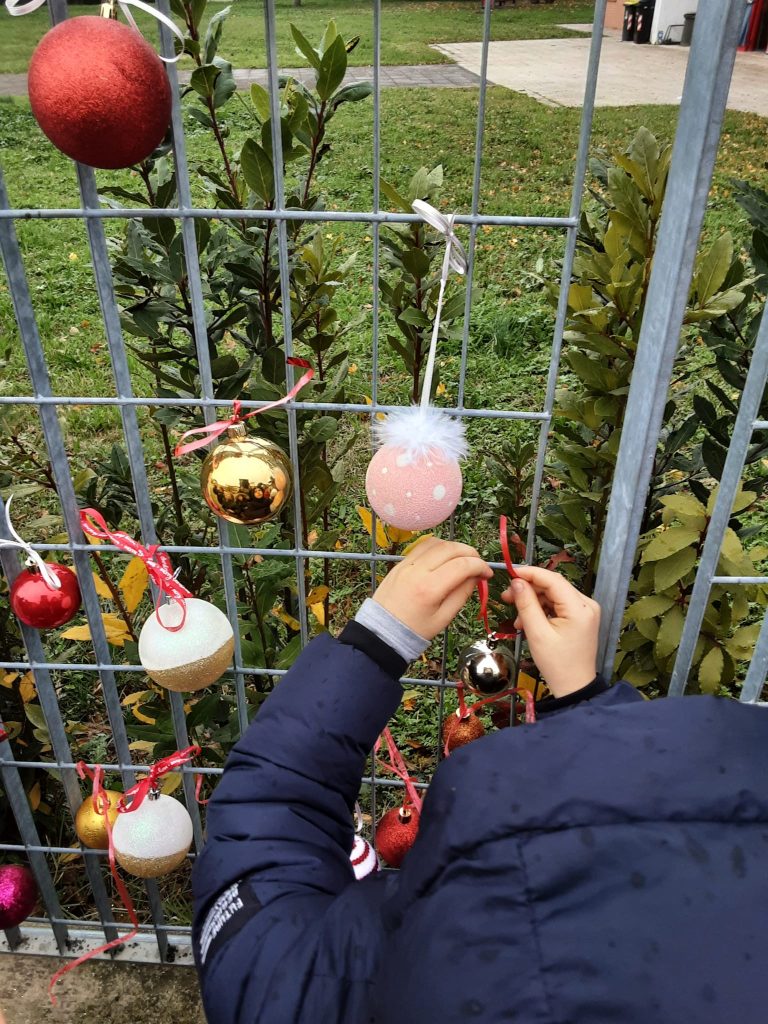 I piccoli alunni hanno portato da casa delle palline per l'albero di Natale e le hanno appese al cancello della scuola per metterle a disposizione di tutti