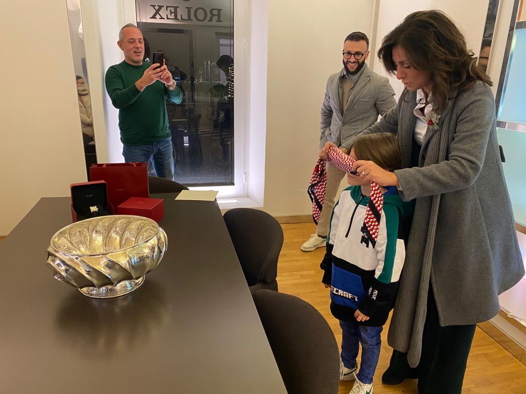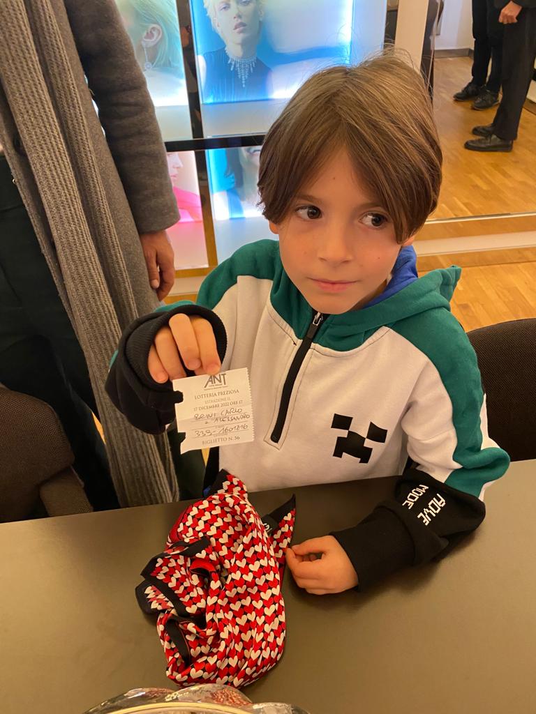 La vicinanza della famiglia Cassetti a Fondazione ANT continua con un regalo che porta un Natale più sereno ai malati oncologici assistiti da ANT nel territorio di Prato. Cassetti ha infatti donato a Fondazione ANT un bellissimo orologio Cartier Tank Must modello piccolo in acciaio per la realizzazione di una lotteria che si è conclusa sabato scorso. L’estrazione della “Lotteria Preziosa” si è tenuta all’interno della boutique Cassetti. Il numero vincitore è il 56, estratto da un bambino alla presenza delle rappresentanze di ANT, della famiglia Cassetti e di alcuni clienti e sostenitori. Grande gioia per il vincitore che, avvertito telefonicamente, si è recato alla boutique Cassetti a ritirare il premio consegnatoli da Filippo Cassetti e dal delegato ANT Tiziano Sperandini. Grazie alla lotteria – i cui biglietti sono stati venduti nel corso del “Buon compleanno Cassetti”, serata di gala speciale organizzata al Garibaldi Milleventi lo scorso 19 novembre – sono stati raccolti ben 9.750 euro. Fondazione ANT ringrazia la famiglia Cassetti per il prezioso sostegno e i tanti sostenitori che hanno tentato la fortuna con grande generosità.