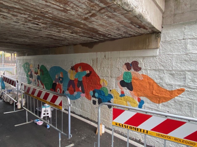 In via Marini arrivano la zona 30, la pista ciclabile ed un murales nel sottopasso