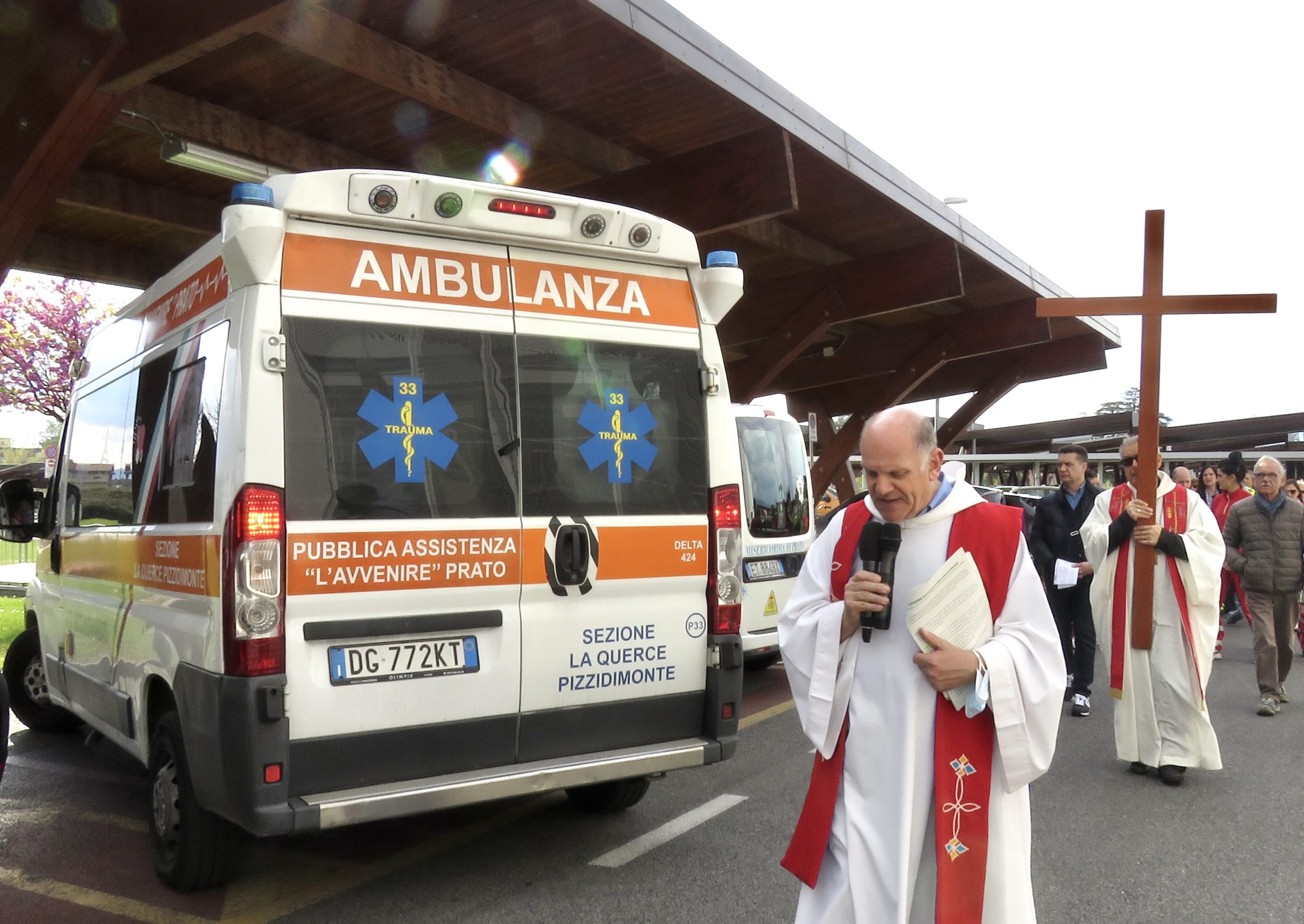 Per il quarto anno consecutivo il giorno del Venerdì Santo il tradizionale rito che ripercorre la passione e la morte di Cristo è stato vissuto nel perimetro esterno dell’ospedale. Anche quest’anno il vescovo Giovanni Nerbini ha, infatti, deciso di portare la croce al Santo Stefano, come segno di speranza, vicinanza e conforto. Un’idea nata durante la pandemia, la prima edizione risale alla Pasqua del 2020, in pieno lockdown, e che il Vescovo ha deciso di proseguire anche una volta terminato lo stato di emergenza. “Perché questa Via Crucis all’ospedale ora che l’emergenza da Covid è finita? Perché non finisce il soffrire dell’uomo, insieme a tanti altri aspetti del suo vivere”, ha detto il vescovo Giovanni.