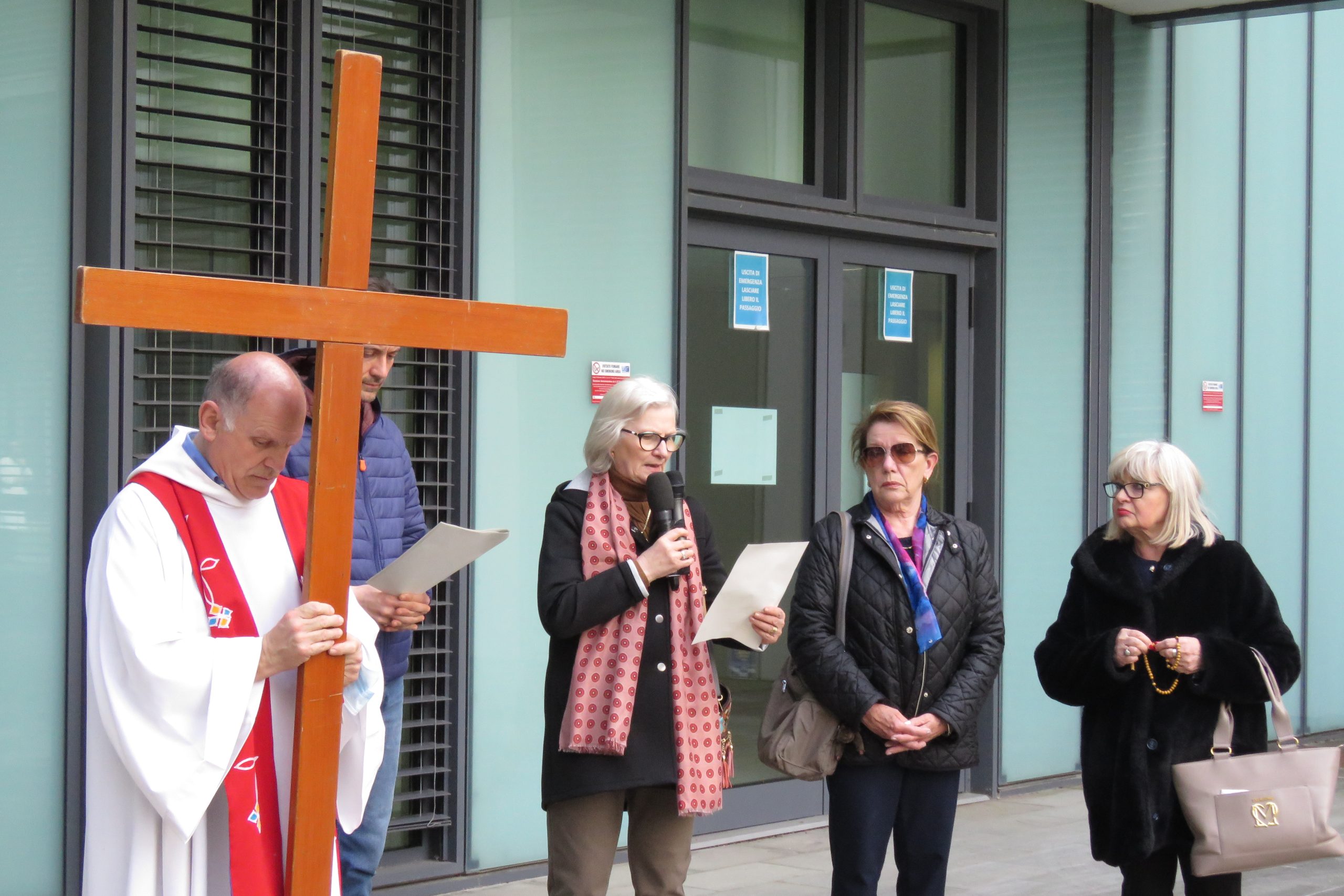 Sette le stazioni, posizionate lungo il perimetro del Santo Stefano, curate dalla cappellania ospedaliera guidata da don Carlo Bergamaschi e dalle associazioni impegnate quotidianamente in ambito sanitario. Filo conduttore le mani, mani di speranza, mani che amano, mani che consolano e che soccorrono, mani di compassione, di solidarietà, mani ferite. Mani che, come scritto nel libretto della Via Crucis, “hanno spezzato e vivificato il pane, hanno benedetto e accarezzato i bambini, hanno curato e sono state trafitte. Mani dolci e potenti che penetrano sino al midollo dell’anima, che plasmano e creano. Mani attraverso le quali passa un così grande amore, un dolce abbandonare la propria anima, specialmente quando soffre e ha paura”. La Via Crucis è stata promossa dalla Cappellania ospedaliera, in accordo con la direzione del Santo Stefano.