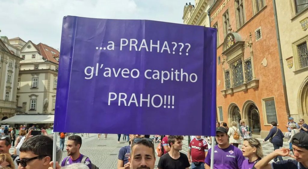 “Praha” diventa “Praho” in un cartello preparato da un tifoso in trasferta a Praga che sta facendo il giro del web: è l’attesa della finale di Conference League, che alle 21 vedrà sfidarsi Fiorentina e West Ham all’Eden Arena di Praga.