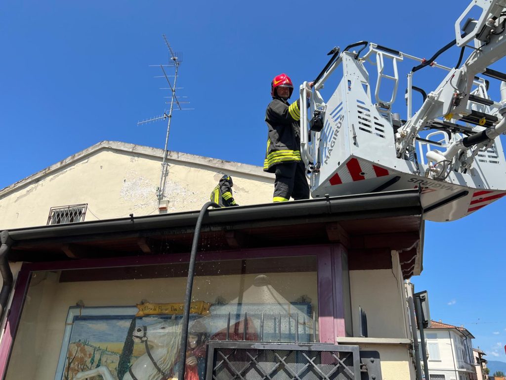 I vigili del fuoco sono intervenuti stamani per un principio di incendio che ha interessato il tetto della pizzeria San Martino, al circolo Mcl di Vergaio. L’allarme è scattato intorno alle 11,30, quando, per cause da accertare, durante le operazioni di sostituzione della guaina si è sviluppato del fumo. L’immediata richiesta di intervento ha consentito ai vigili del fuoco di spegnere sul nascere il principio di incendio. Irrisori i danni alla struttura.