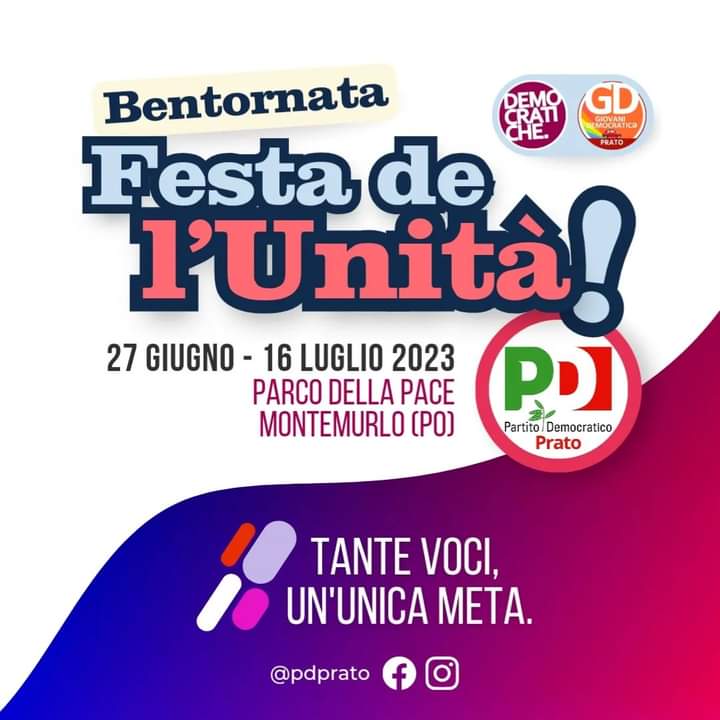 “In questi mesi abbiamo rimesso in moto tutte le nostre energie e, grazie alla disponibilità di decine di volontarie e volontari, siamo riusciti a riportare a Prato la festa provinciale de l’Unità, un appuntamento che mancava dal 2016. Siamo certi che sarà un importante momento di confronto per il futuro di Prato e della Toscana, non solo per il profilo nazionale dei nostri ospiti ma anche per la qualità del dibattito che intendiamo sviluppare nelle prossime tre settimane” afferma Marco Biagioni, segretario provinciale del Partito Democratico di Prato. “La nostra idea è di fare della festa una vera e propria piattaforma di dibattito con tutti i partiti e i movimenti che sono all’opposizione di questo governo, da Italia Viva a Sinistra Italiana, dai Verdi al Movimento 5 Stelle. Come abbiamo fatto per gli Stati Generali, forti delle nostre idee e della nostra identità, metteremo a disposizione di tutte e tutti un luogo dove poter sviluppare un confronto vero su lavoro, diritti, ambiente, immigrazione, sanità, e, ovviamente, sul futuro della nostra città” aggiunga Biagioni.