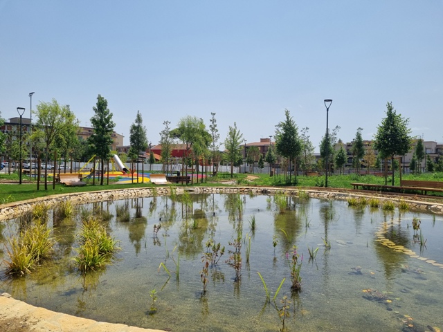 Si tratta di una grande area pedonalizzata di 24 mila metri quadri nel cuore della città. Un “central park” con tante funzioni per tutte le fasce d’età. C’è l’area gioco per la prima infanzia con un grande scivolo, un gioco per l’arrampicata, tappetti elastici, altalene e giochi a molla. Per i ragazzi un’altra isola tematica del parco propone uno skate park e un campo da basket che, all’occorrenza può trasformarsi in arena per gli eventi. Molto suggestiva anche l’area del bio-lago, uno specchio d’acqua artificiale dove la depurazione non viene effettuata mediante i classici sistemi ma attraverso l’utilizzo di elementi naturali che hanno la medesima funzione come piante e ghiaia. Nel parco sono già stati sistemati tutti gli arredi in legno: come panchine, tavoli e sedute dalle forme insolite; nell’area del laghetto si trovano grandi sdraio in legno che potranno essere utilizzati per il relax. Poco distante una fontana a terra con giochi d’acqua, sicuramente farà la gioia dei bambini nelle calde giornate estive.