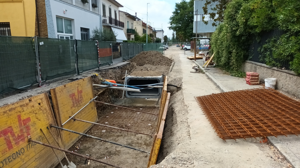 È terminata la posa dello scatolare (1,5 x 1.0 metri) e tubazione in PVC di via Bensa (tra l’area cani e l’incrocio con via Paolieri) e via Edmondo de Amicis (da via Bensa all’incrocio con via Dino Campana). Al termine delle lavorazioni nell’area prospicente via Bensa attualmente adibita sarà ripristinato il verde e sarà restituita alla cittadinanza.
