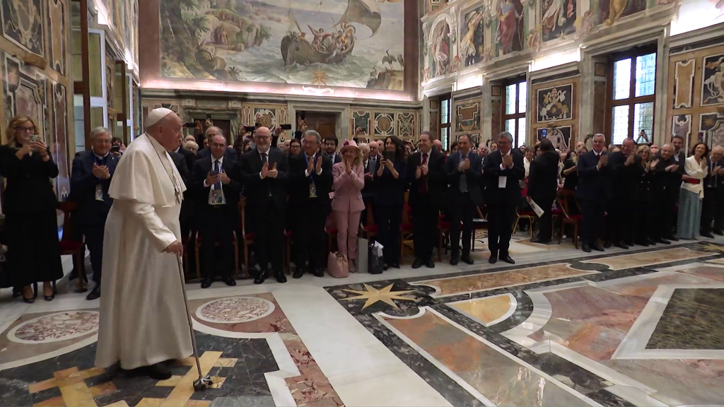 Francesco ha accolto in udienza il Corallo, l'associazione che riunisce le imprese radiotelevisive. Ha partecipato il presidente di Tv Prato Roberto Macrì